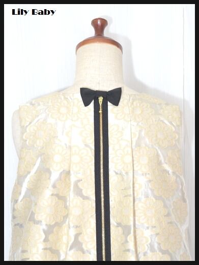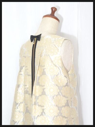 ハリのあるオーガンジーにフラワーモチーフが刺しゅうされたMade in Italyの生地でクラシカルに仕上げたワンピース。シアー感と艶のある素材が上品な大人可愛らしさを演出します。フロントには大きくて丸いゴールドのボタンでアクセント。バックはブラックの見せZIP&リボンで抜け感のある遊び心を感じます。フロントとバックに入ったタックでふんわりとしたフォルムもキュートです。