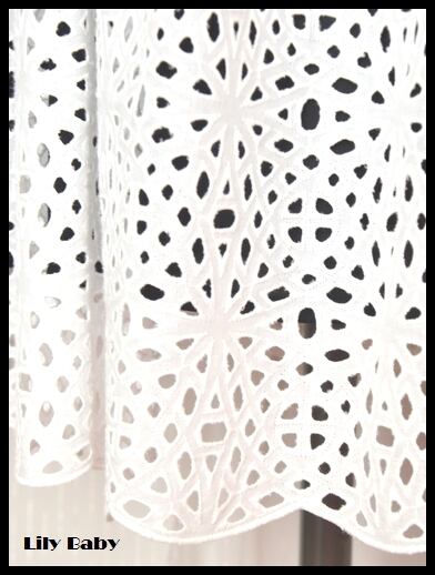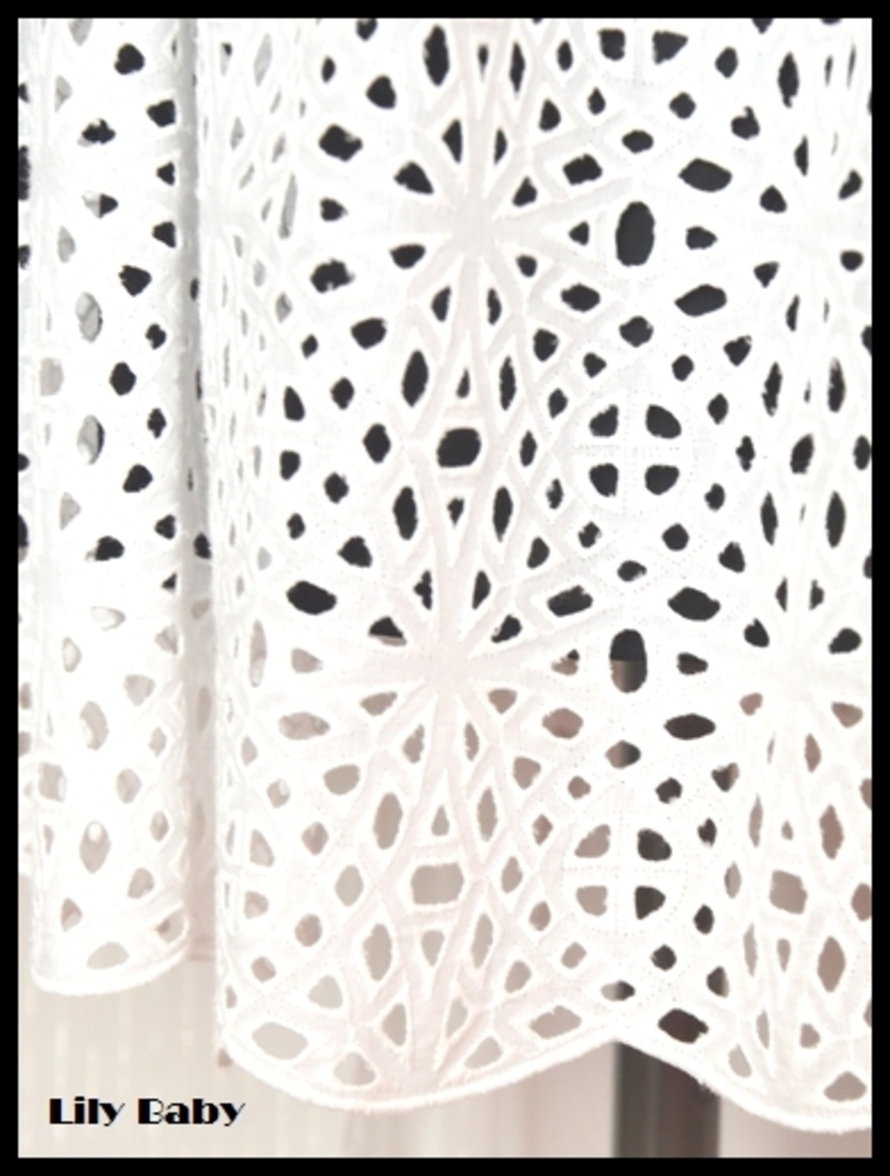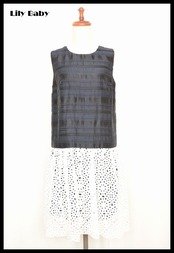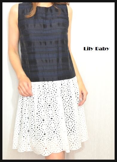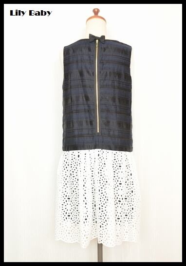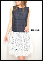 ダークネイビーのシアーボーダーに真っ白のカットワークが映えるワンピースです。